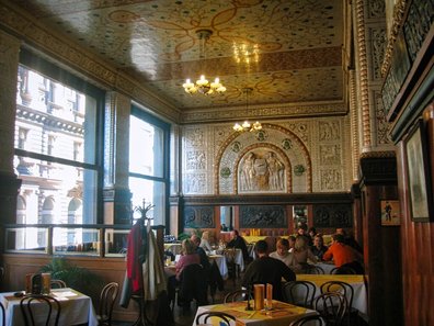 Ein Prunkstück des Art déco mit vollständig erhaltenen Keramikmosaiken, Säulen und Ornamentik. Das Café ist Bestandteil des gleichnamigen Hotels und zählt zu den glamourösesten der Stadt. Der Stil ist imposant, der Betrieb oft geschäftig – eine Reservierung ist ratsam.